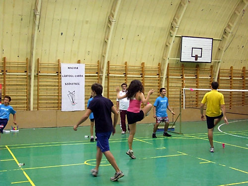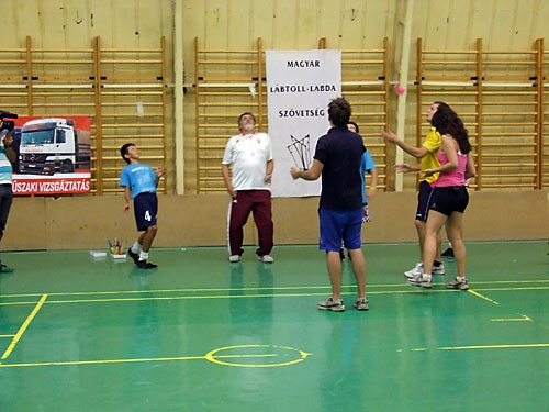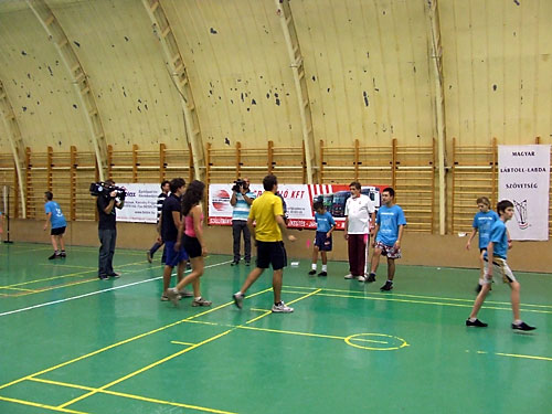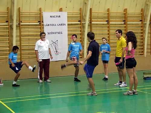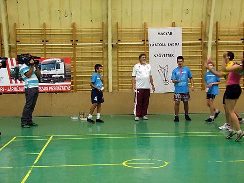 Lajos, valamint edzõjük Fehér János lábtoll-labdázni tanították a
