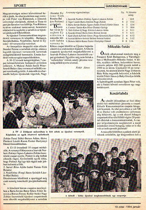 lábtoll-labdázói az újszászi tornacsarnokban. 1994-ben és 1995-ben még csak