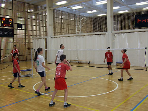 versenyszerû játék elemei következtek: a szerva, a fejelés, a vállazás, a