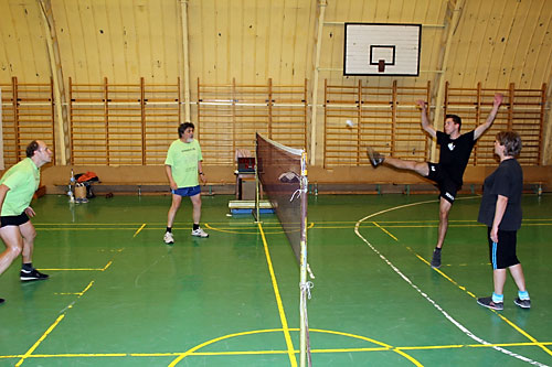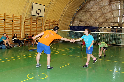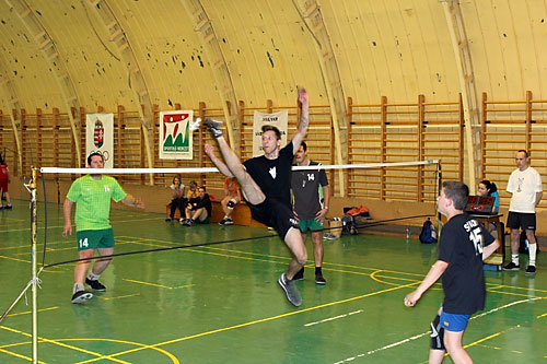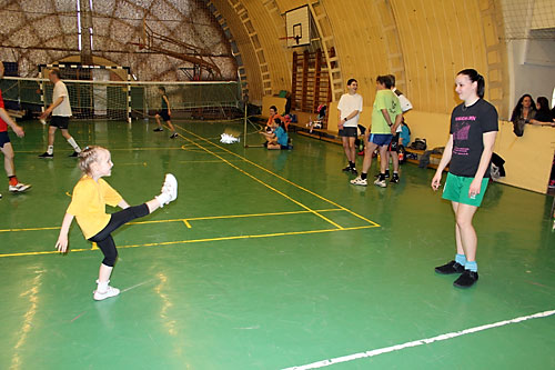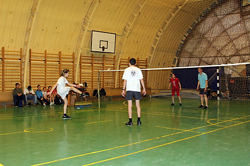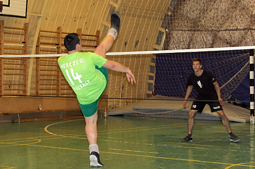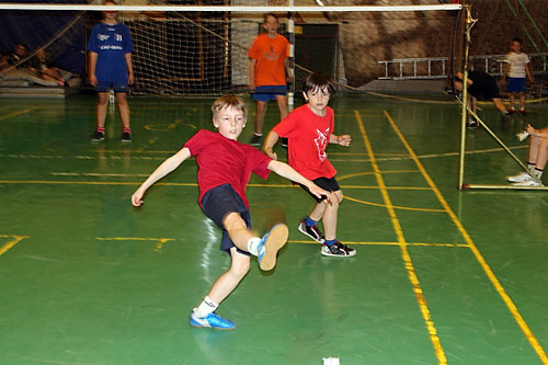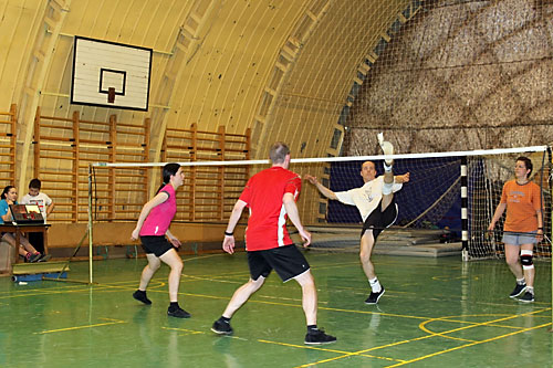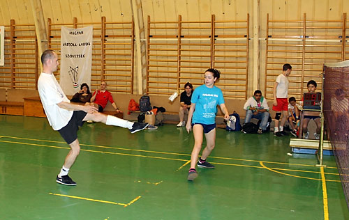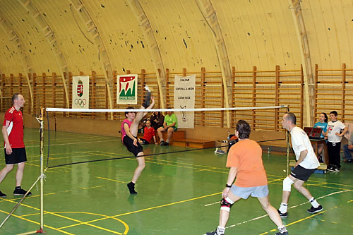 lábtoll-labda szakosztálya. A jó hangulatú versenyen a résztvevõk házaspáros,