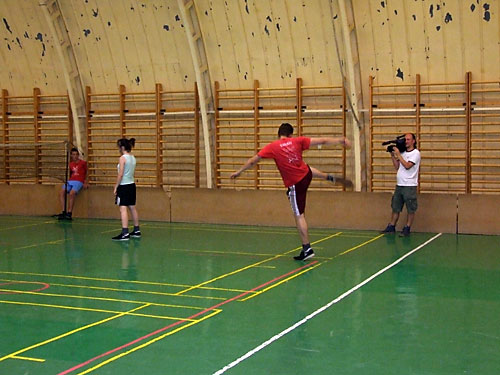 Tóth Gábor és Kalmár Ágnes lábtoll-labdázás közben