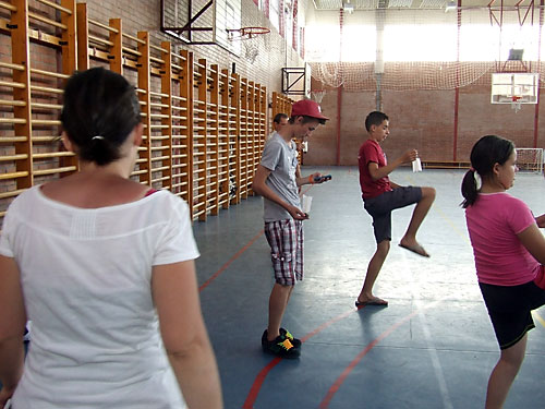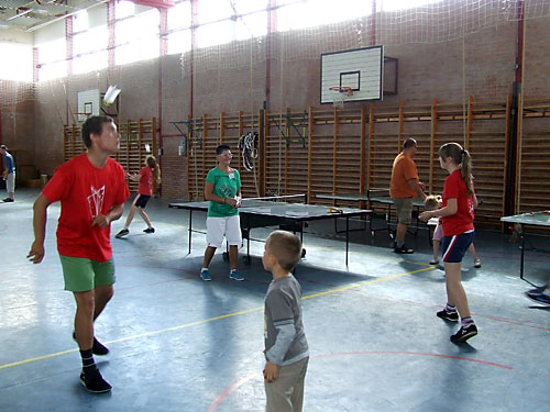 udvarán és tornatermében. A sokszínû programban szerepelt a lábtoll-labdázás