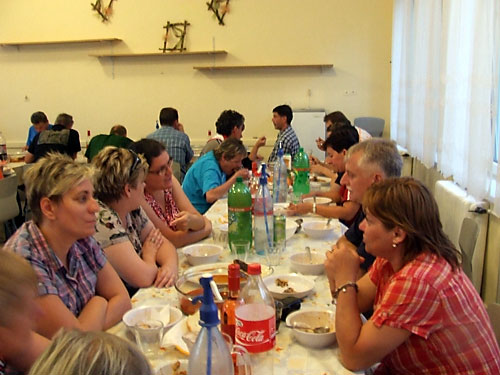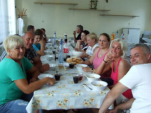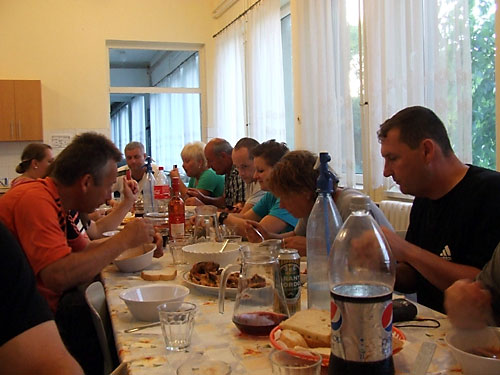 A kirándulás után a vendéglátók mohácsi halászlével (a bajaihoz