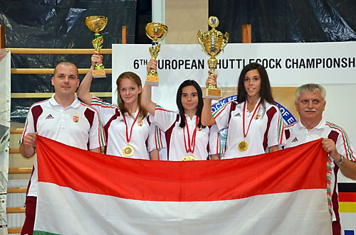 Morvai Noémi, Kunics Réka, Vlasics Dalma és Budavölgyi Kálmán edzõ