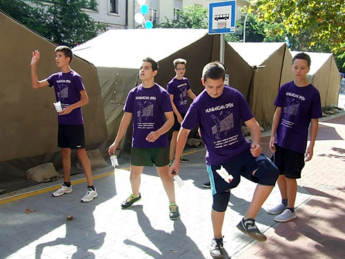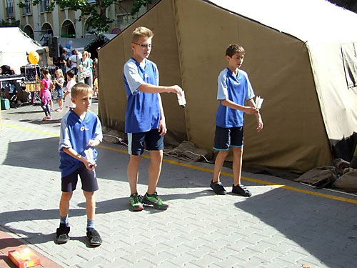 Szabó Martin, Vámosi Róbert –, akik a iskola fõutcán felállított sátránál egy