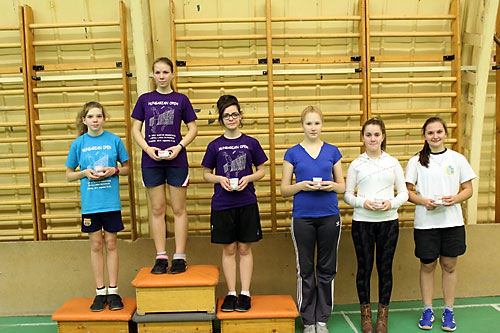 Serdülõ leány (7): 1. Ézsiás Fanni, 2. Farkas Lilla, döntõ: 55-53