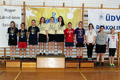 döntõ: 15-6, 15-8, 3. Tóth Tamara (mind Rózsa Imre Középiskola Újszász)