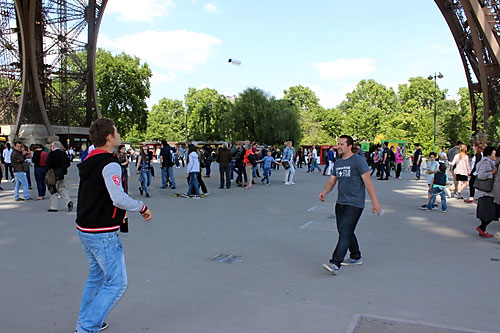 Lábtoll-labdázás a Eiffel torony alatt