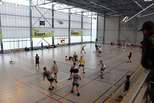 sportcsarnok hét pályáján az elsõ nap négy csoportban a selejtezõk zajlottak,