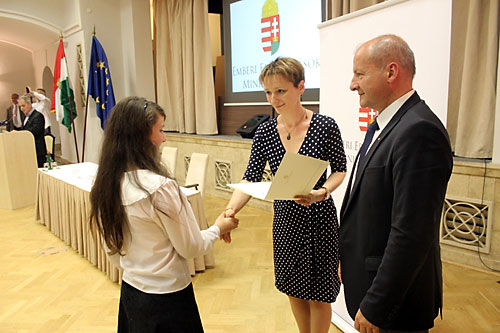 minisztériumban megrendezett díjátadón: Ézsiás Zsófia és Szabó Gergõ