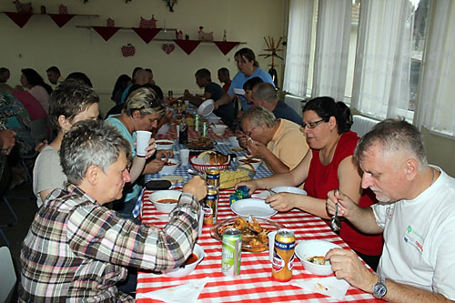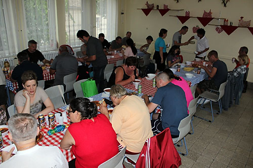 A vizes program után a vendéglátók mohácsi halászlével (a bajaihoz