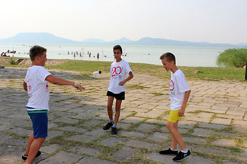 Lábtoll-labdázás a Balaton parton