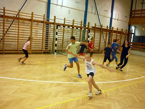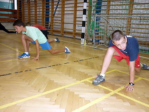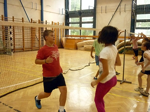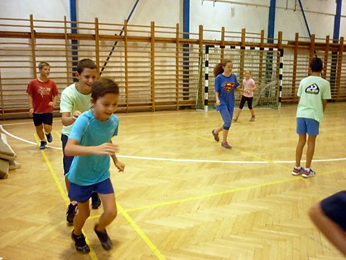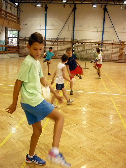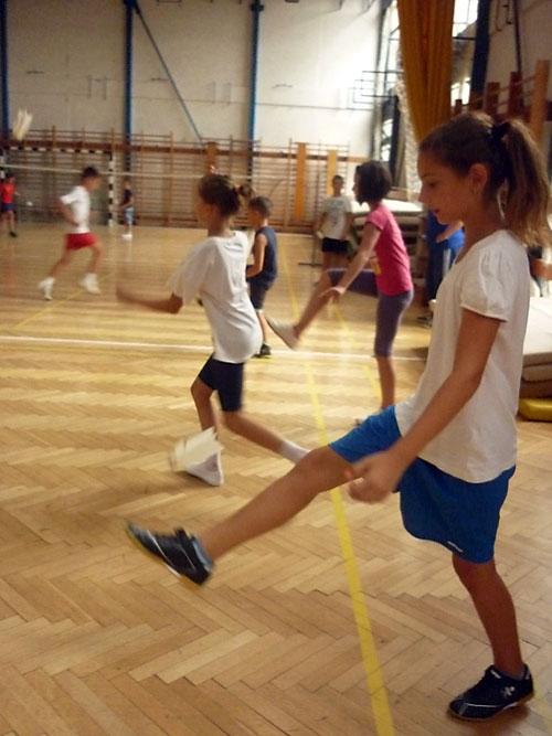 bemelegítése, a labdaérintések gyakorlása. Még a nyárhoz illõ vidámsággal, sok