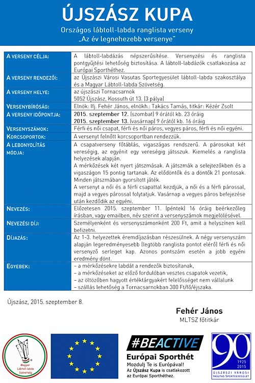 Szeptember 13. 9 óra Újszász Városi Tornacsarnok vegyes páros,