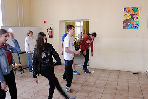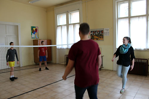 osztályteremben felállított pályán, hol kinn a szabadban játszott az