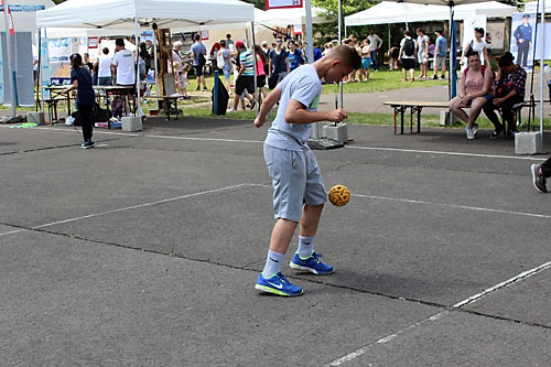 Lábtoll-labdázás a FODISZ sátornál