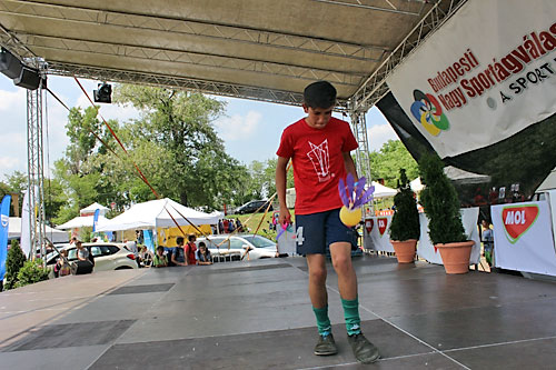 zsonglõrködött a színpadon. Egy új sportágat is bemutattak. Magyarországon a