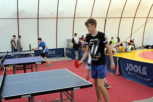 Sportágválasztón. Egész nap lelkesen lábtoll-labdáztak. Tanáraik a