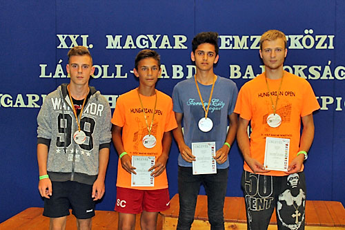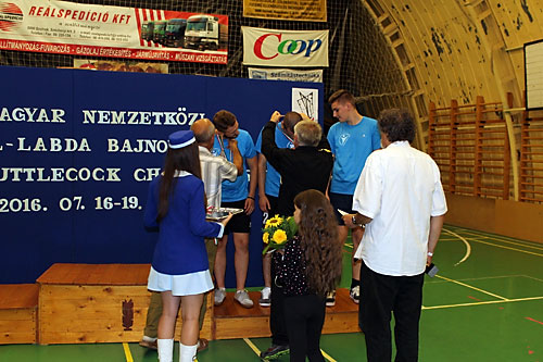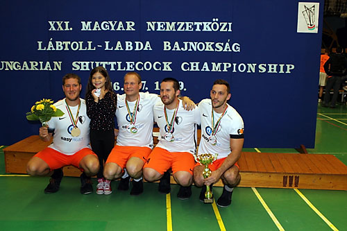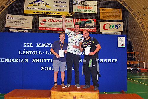 Baranyai Benett, Farkas Balázs, Horváth Gergõ (Nagykanizsa ZSE) 18-21, 21-18,