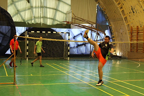 lelkesedéssel játszották a lábtoll-labda rokon sportágát, izgalmas és mozgalmas