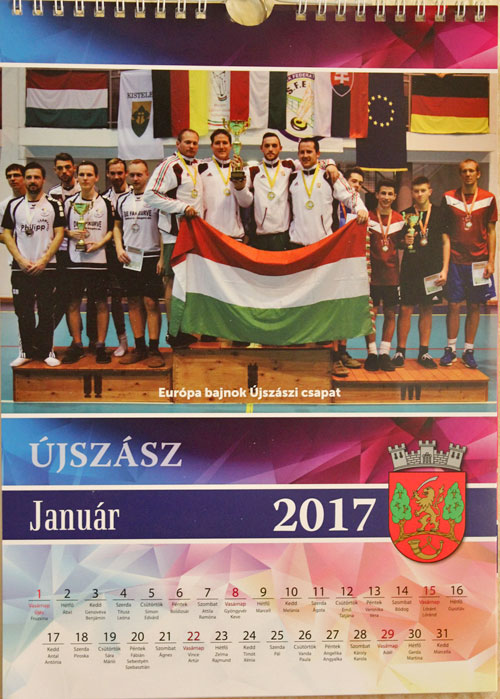 készült képek láthatók. A 2017. évi naptár januári oldalán az Újszászi VVSE