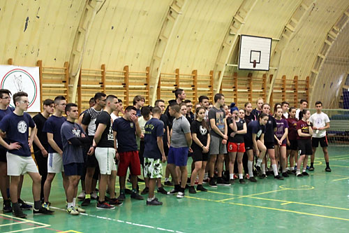 A felsorakozott versenyzõk a megyei döntõ megnyitóján