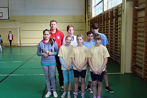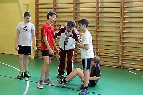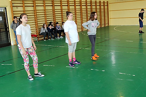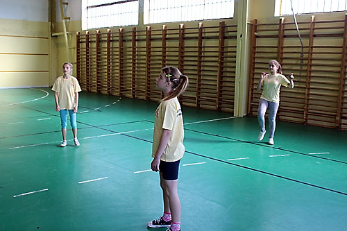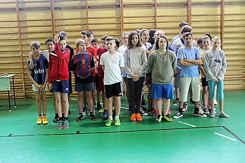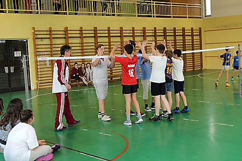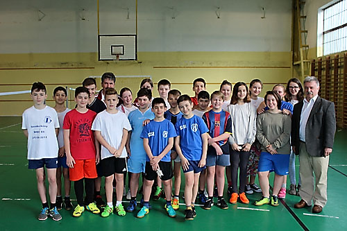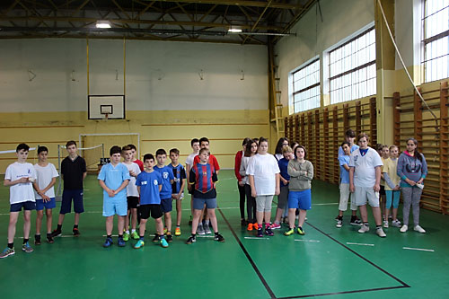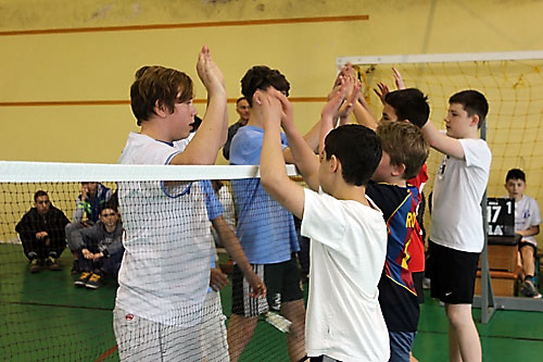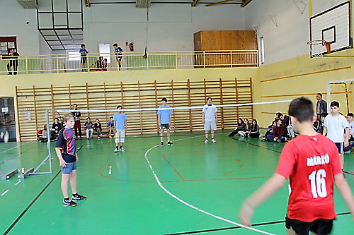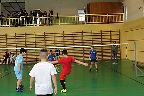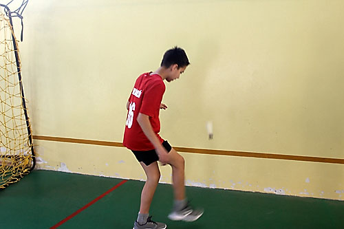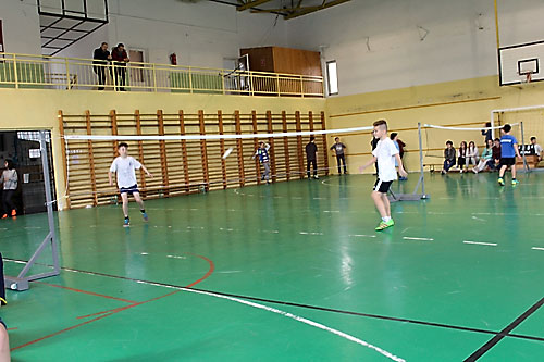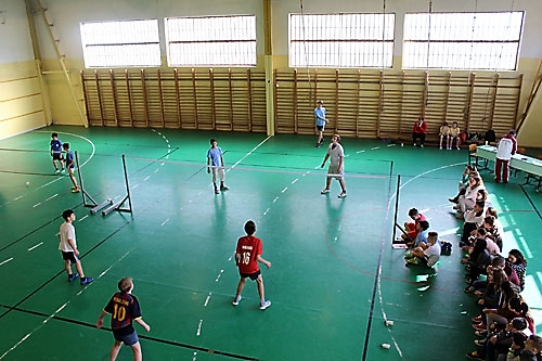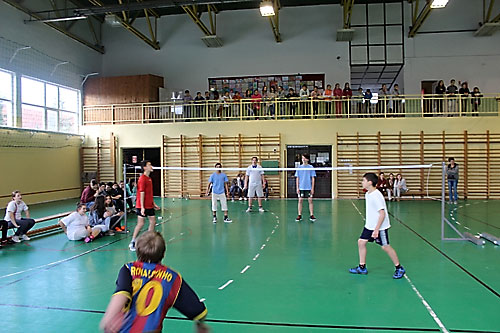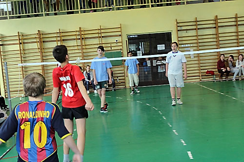 tanulók között a lábtoll-labdázást. A versenyzésre kiválóan alkalmas teremben