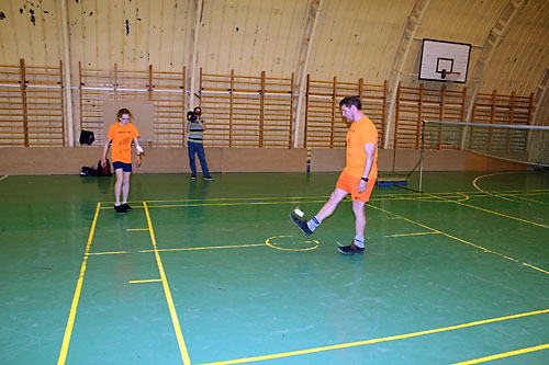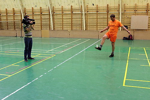 A riporter is kipróbálta a lábtoll-labdázást