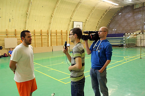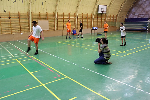 és Újságíró Iskola – tanulója vizsgafilmjét a lábtoll-labdáról készíti. Május