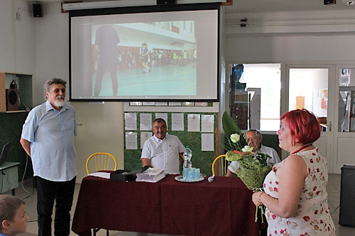 aulájában rendezett ünnepségen emlékidézõként a kivetítõn az iskolai, a megyei