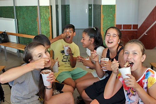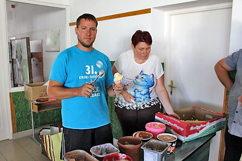 és Tóth Gábor közremûködésével, többször repetázva 15 kg fagylaltot és 80 db tölcsért fogyasztott el a vakációra készülõ vidám csapat.