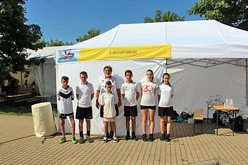 lábtoll-labdázást 35 fokos melegben Fehér János vezetésével Ézsiás Fanni,