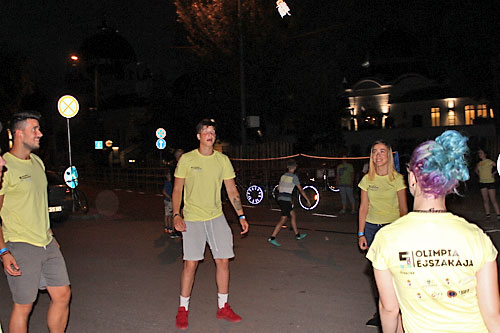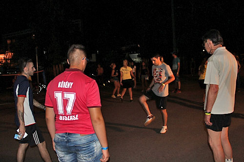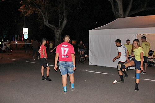 rúgták a labdát az éjszakai lábtoll-labdázáson. A sok vendéghez sok segítõ