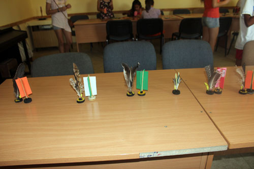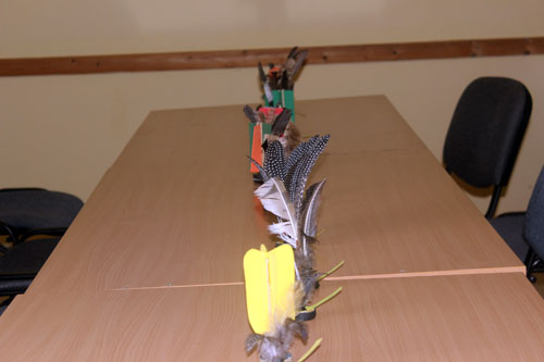 és érdekes alkotás született. A legszebb labda gyöngytyúk tollból készült. A
