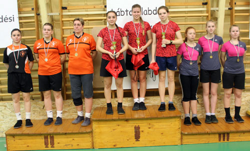 Ézsiás Fanni, Joó Anett, Vágó Henriett (Újszászi VVSE) 21-10, 21-15