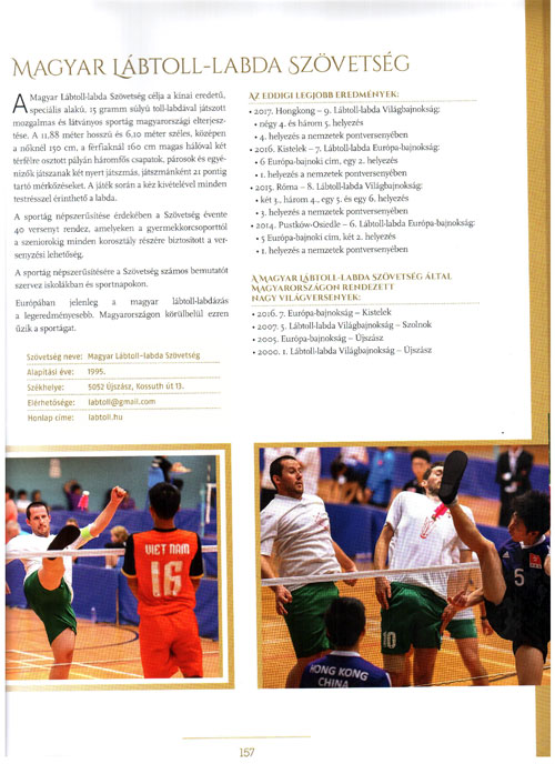 Lábtoll-labda Szövetségrõl, a lábtoll-labda sportágról a 156-157. oldalon