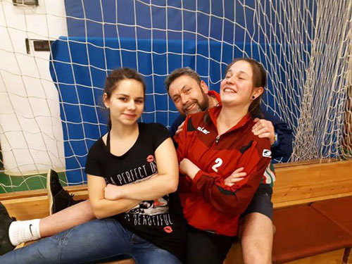 Az „apa” és lányaival: Gyalog Csenge, Takács Tamás és