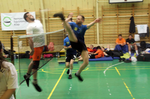 Benett, Horváth Gergõ döntõ. Az elsõ játszmát a kanizsaiak nyerték 21-17-re. A