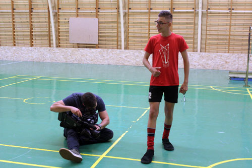 Május 8-án Újszászon a lábtoll-labdázásról forgatott az M4