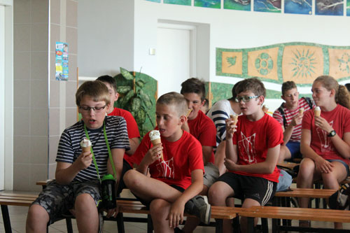 tölcsért fogyasztott el a vakációra készülõ vidám csapat.