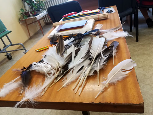 készítették a labdákat. A tyúk, fácán, gyöngytyúk és libatollakból, papírból és