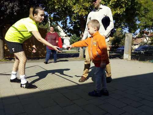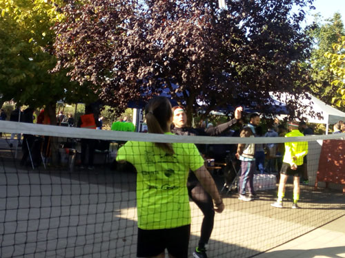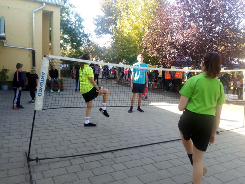 szép õszi idõben a mûvelõdési ház mellett felállított hálónál játszottak minden