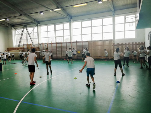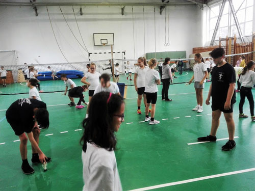 testnevelõ tanárok is kedvet kaptak a játékhoz, így nagy közös lábtoll-labdázás