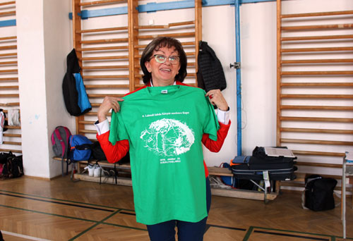 Dr. Ténai Mária a rendezvény hivatalos pólójával