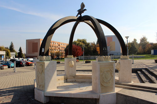 díszkutat, amelynek dombormûvei a városhoz kötõdõ történelmi személyiségeket