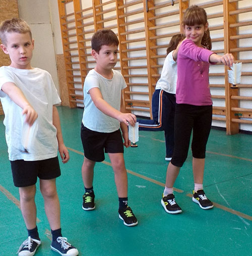 Gimnáziumban a lábtoll-labdát második osztályos gyerekekkel próbáltuk ki