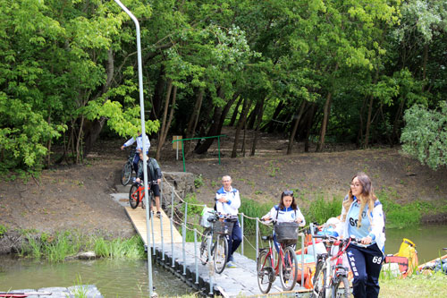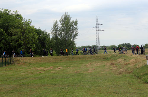 Zagyva Ökopark pályázat keretében elkészült pontonhídon a Zagyván átkelve a