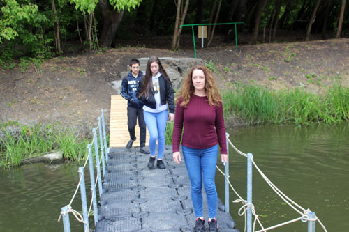 Tánczos Krisztina, Bakó Lili és Jónás Károly a pontonhídon