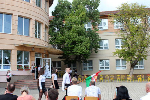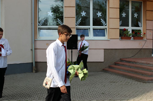 iskolaudvarra, és a távolságot betartva sorakoztak fel az ünnepségre.
