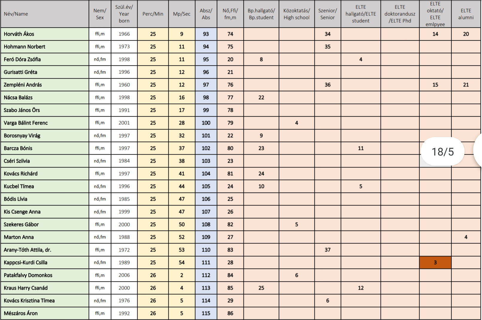 abszolút futamát. A férfiak közül is csak nyolcan elõzték meg. Csenge 25 perc